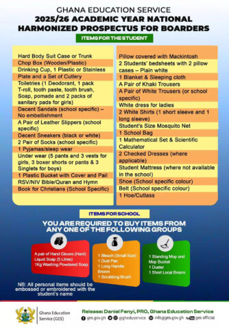 The GES Harmonized Prospectus is the official list of approved items that every student entering Senior High School Form 1 (SHS 1) in Ghana must bring. It was introduced by the Ghana Education Service (GES) to standardize requirements across all SHSs and reduce unnecessary costs for parents.